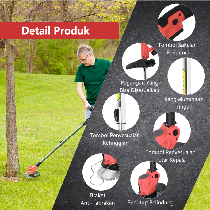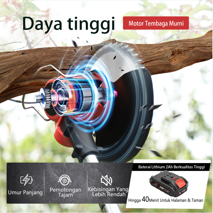 IXCE Alat pemotong rumput listrik tanpa kabel portabel yang dapat dilipat Baterai 24V / 36V / 48V