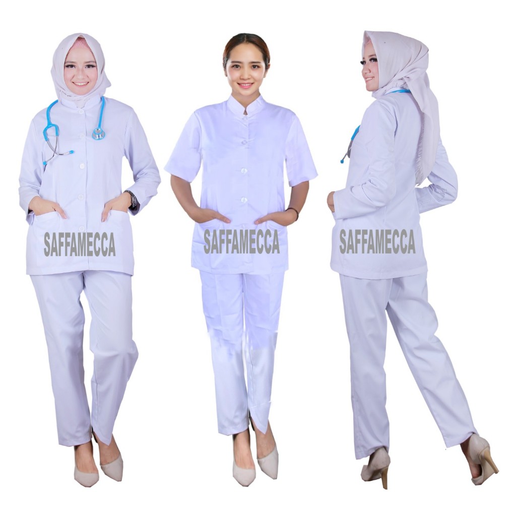 Baju Perawat Lengan Panjang Dan Lengan Pendek Seragam Perawat Dokter Medis Bidan Nakes Kusus Wanita
