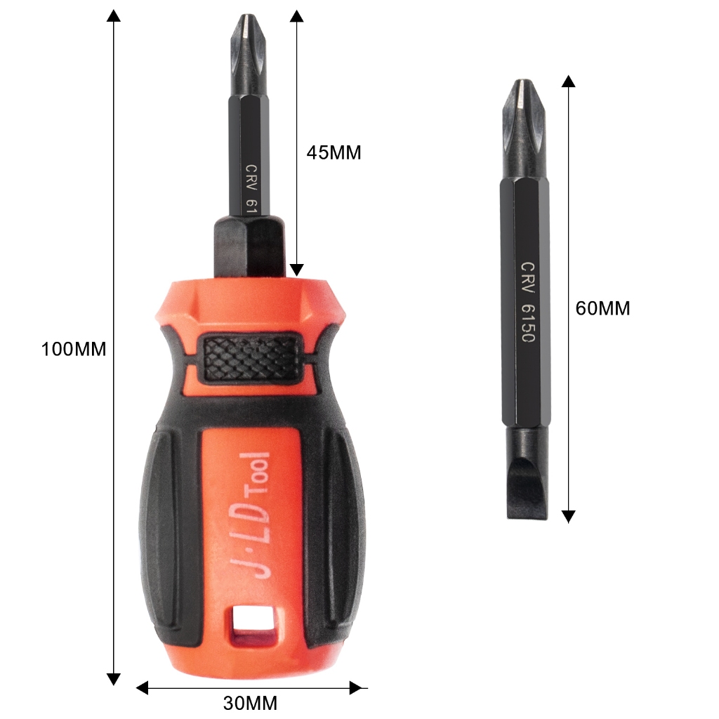 Jld 4Inch Obeng Bisa Dilepas 3In1 Plus+Minus+Magnet Obeng Set Screwdriver Obeng Bolak Balik Cebol Obeng Pendek Murah