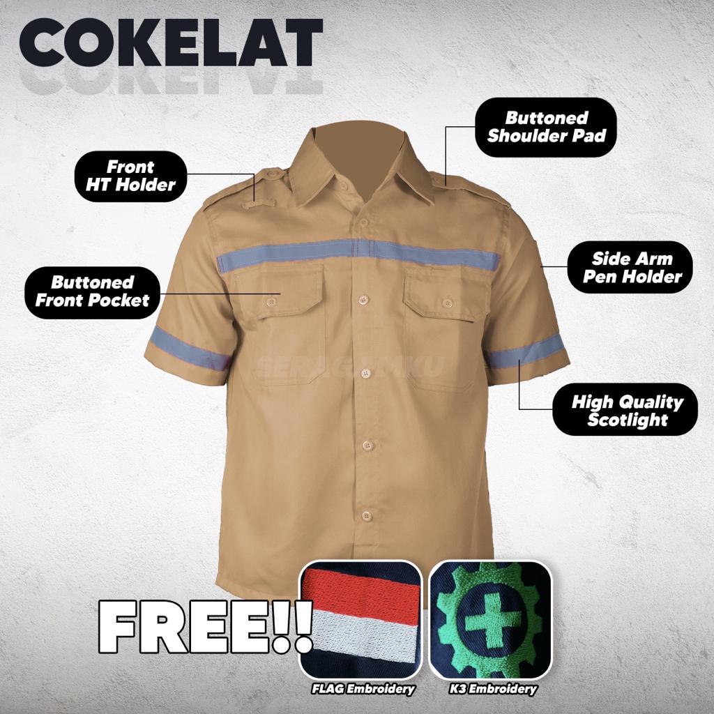 Wearpack Safety Cokelat Atasan Kemeja Pendek Baju Kerja Murah Seragamku