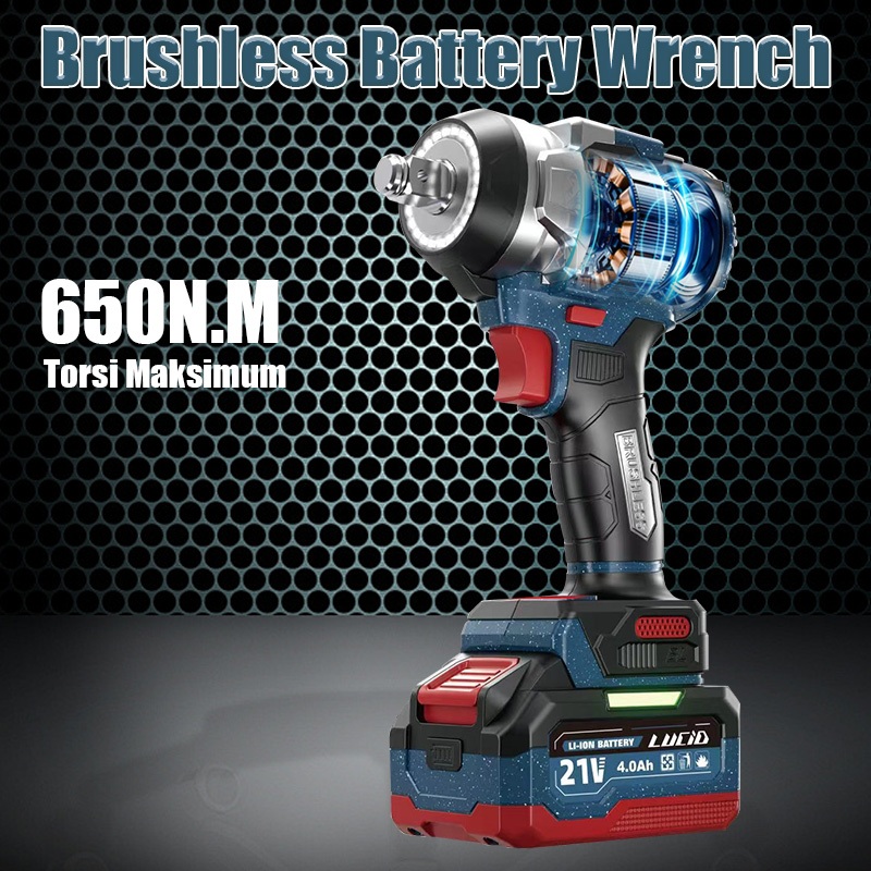 LUCID LH500 650N.M Brushless Impact Wrench 21V 4.0Ah Battery Cordless heavy duty
