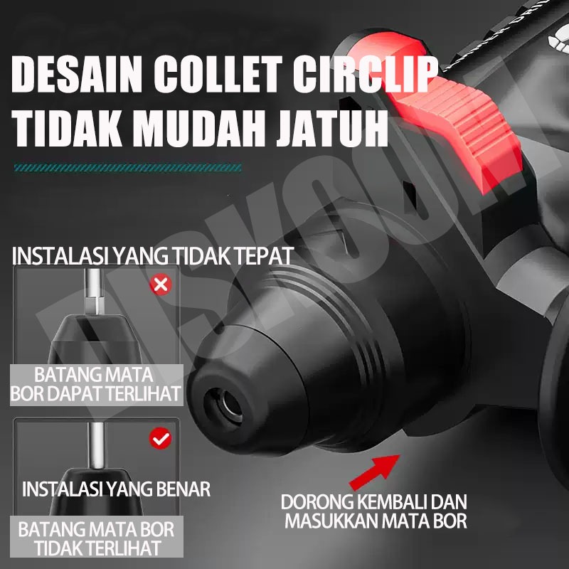 DISKOOM Hammer Drill Mesin Bor Listrik Bobok Beton Impact Drill 3IN1Cordless Brushless Rotary Hammer