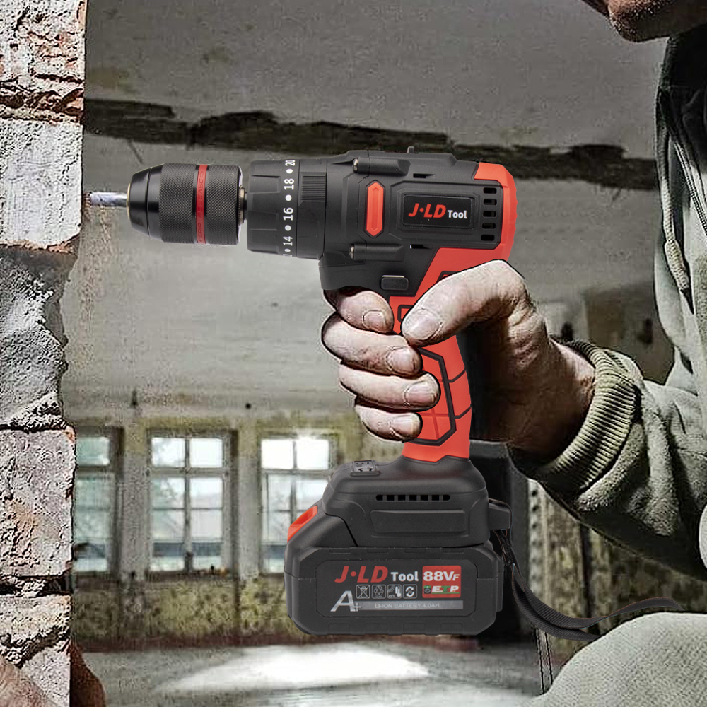 JLD Mesin bor 2Baterai 88VF Brushless Cordless Drill J13 bor Impact 3 e 13MM Chuck besi/Best mesin bor 200NM Bor cas