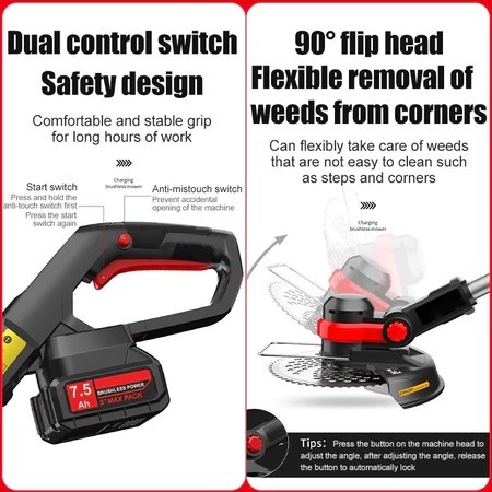 Mesin Potong Rumput 288/588/1090VF Pemotong Rumput Listrik Pemangkas Rumput dengan Baterai Li-ion High Power Alat Pemoto