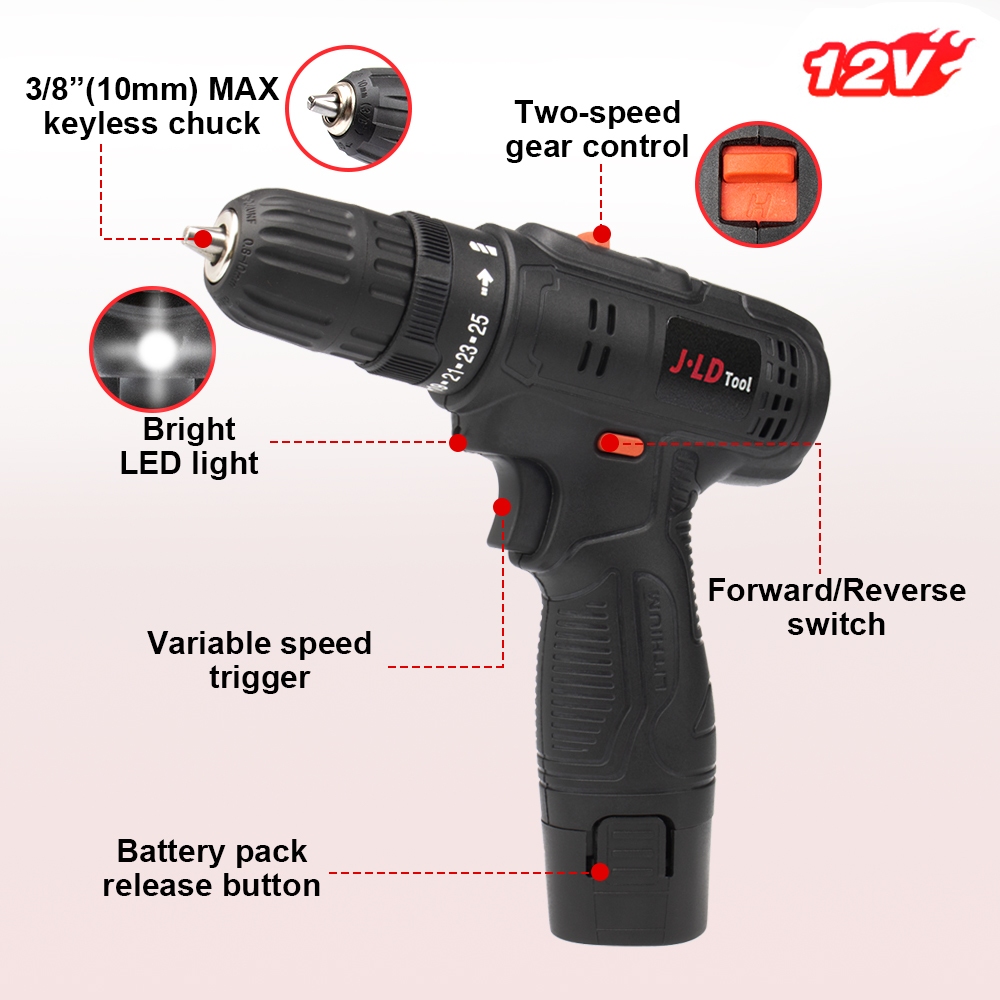Jld Mesin Bor Batre Cordless Drill Battery 12S - Mesin Bor Kayu Triplek Besi Ringan Portable Baterai 10Mm Bor Cordless M