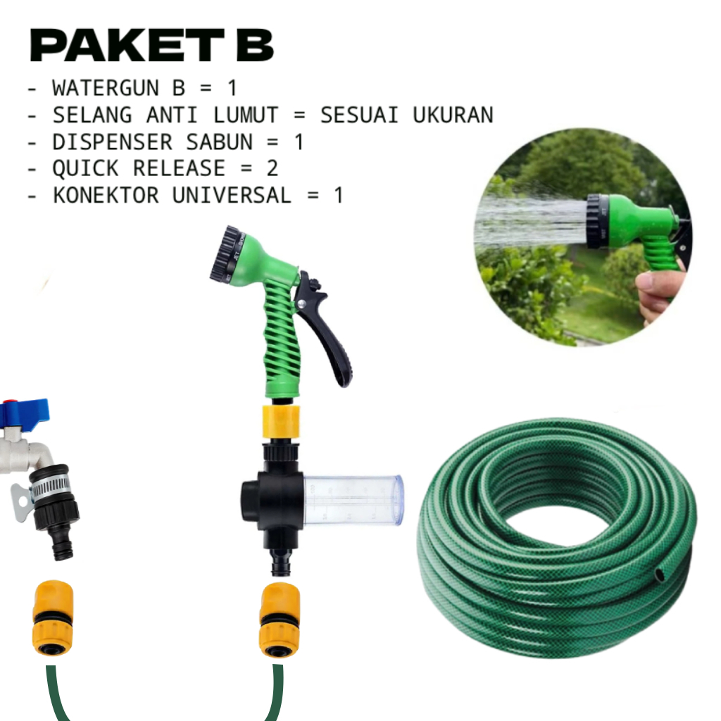Gemuk Sepaket Selang Air Semprotan Air Jet Spray Gun Cuci Motor Cuci Mobil Siram Tanaman Lengkap Dengan Tabung Sabun 100