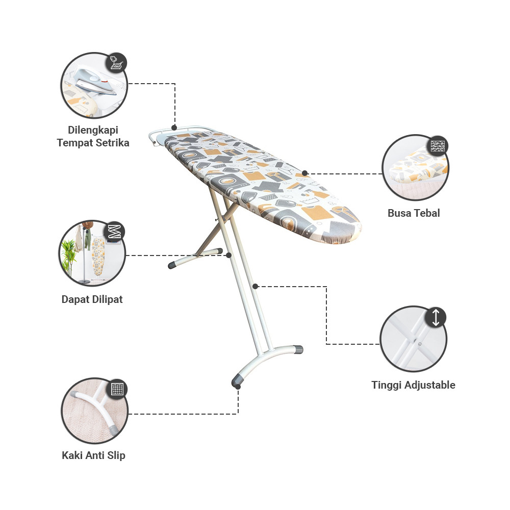 Informa 110X35X83 Cm Bloomy Meja Setrika Lipat Classic Papan Setrikaan Alas Tempat Setrika Ironing Board Perlengkapan Ru