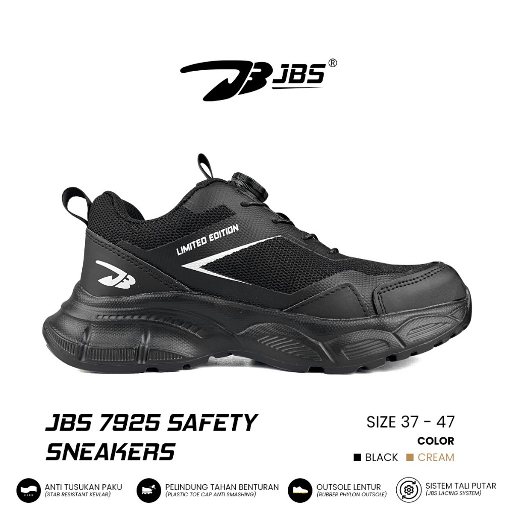 Sepatu Safety Sneakers Jbs 7925 Plastik Toe Cap Tali Putar Anti Tusukan Anti Metal Detector Bandara