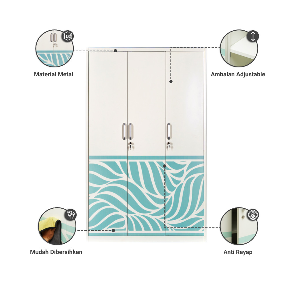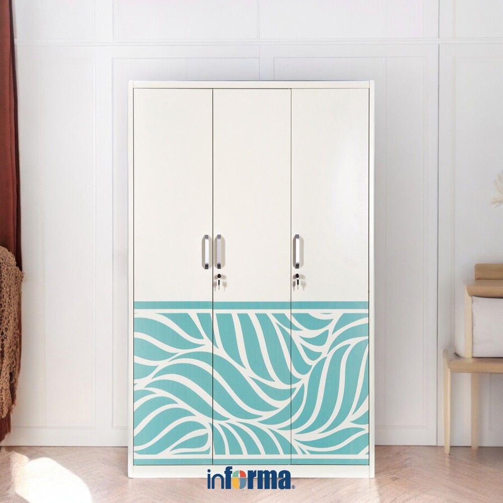 Informa Bloom Lemari Pakaian 3 Pintu - Putih/Biru Wardrobe Storage Kabinet Tempat Simpan Baju Lemari Aesthetic