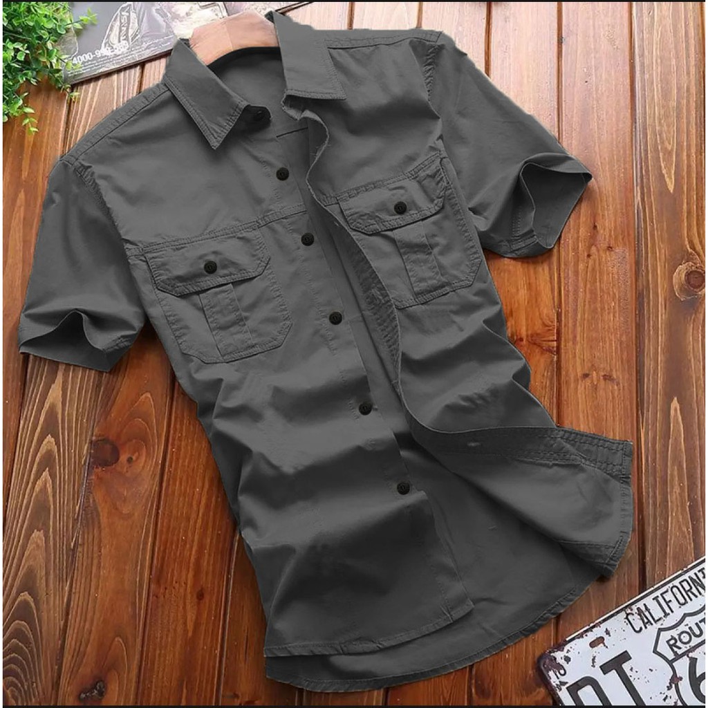 5WARNA5 Ukuran M Sampai Jumbo/Kemeja Kantor Pria Lengan Pendekntong Depan/Hem Pria Casual/Hylos