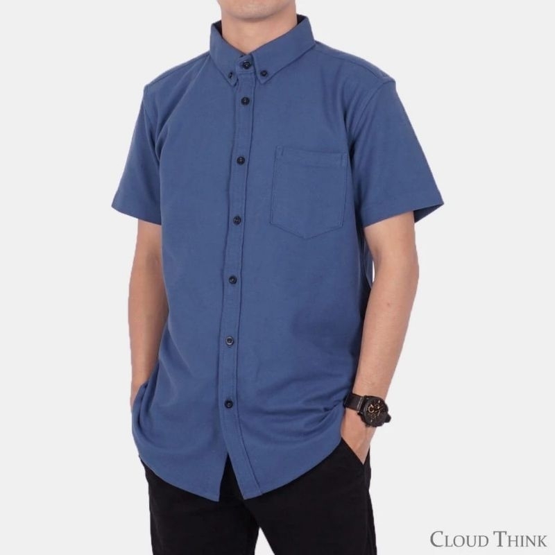 Kemeja Pria Denim Lengan Pendek Katun Nyaman