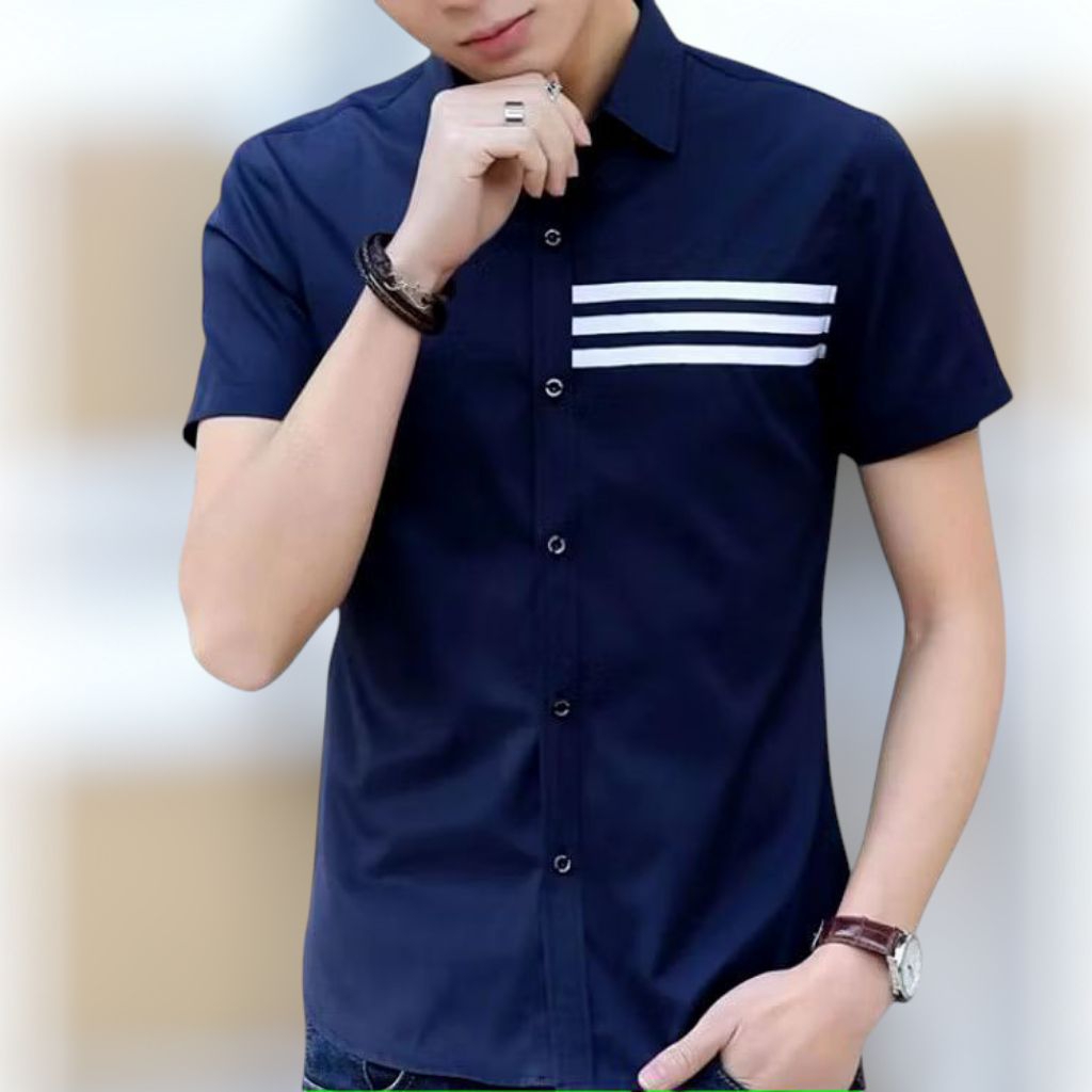 Kemeja Pria Katun Lengan Pendek Motif garis stylish