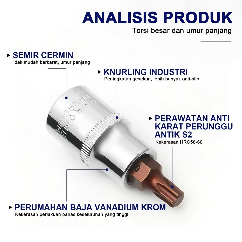 Jld 1/2'' Mata Kunci Shock Bintang T40 T45 T50 Mata Hexagonal Hex Bit Socket Mata Sok Impact