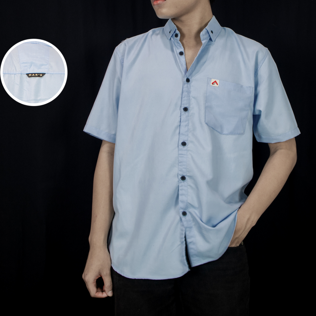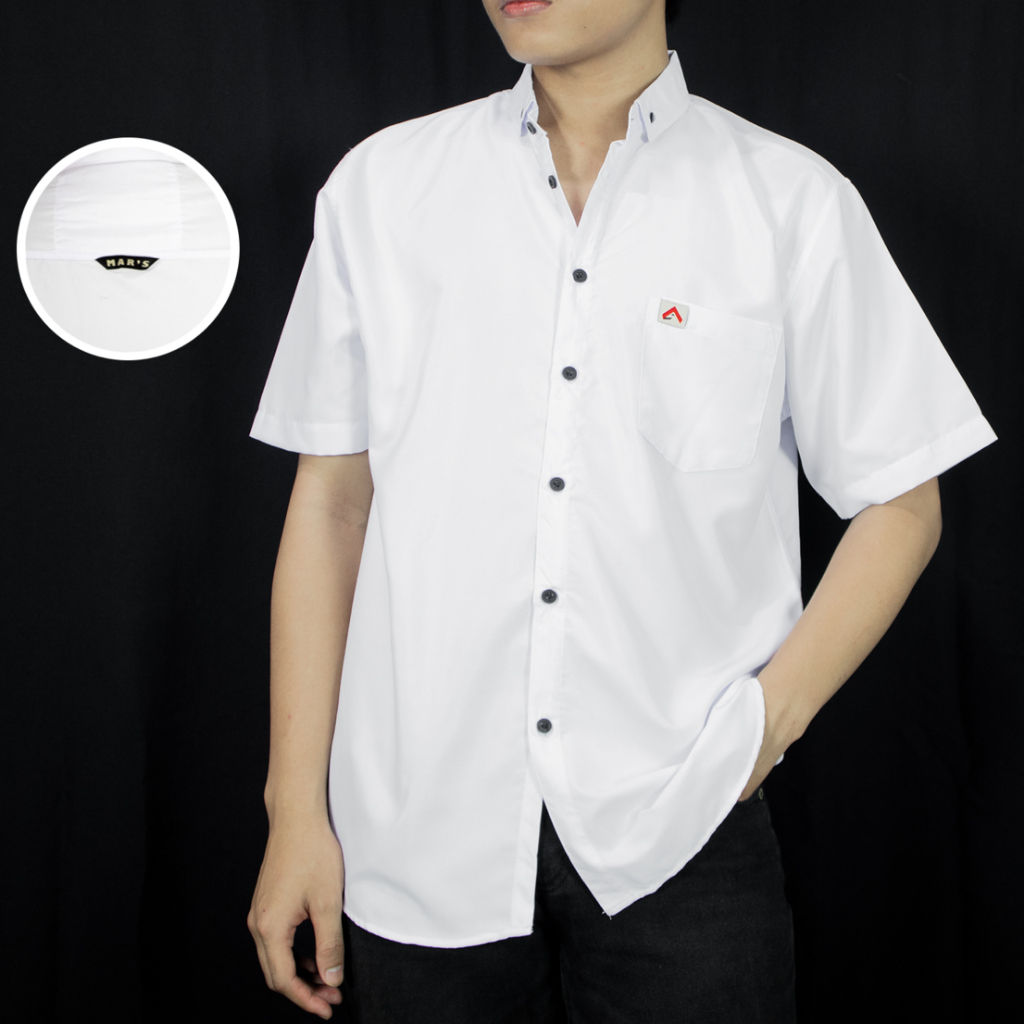 MARS - Kemeja Lengan Pendek Pria - Kemeja Pria Slim Jumbo Polos Katun Size M L XL XXL XXXL 4XL