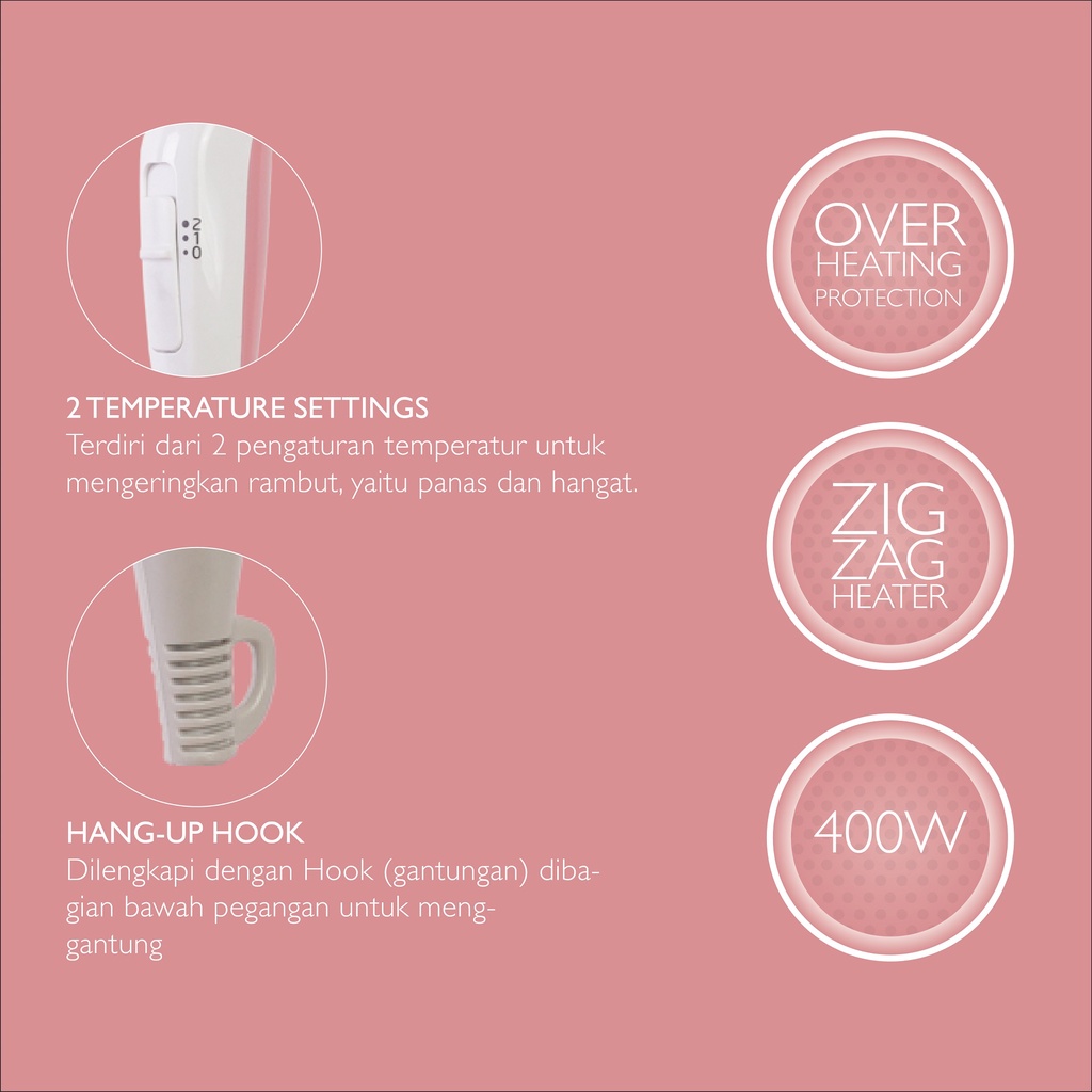 ARLITA Hair Dryer Pengering Rambut 400W Hemat Daya