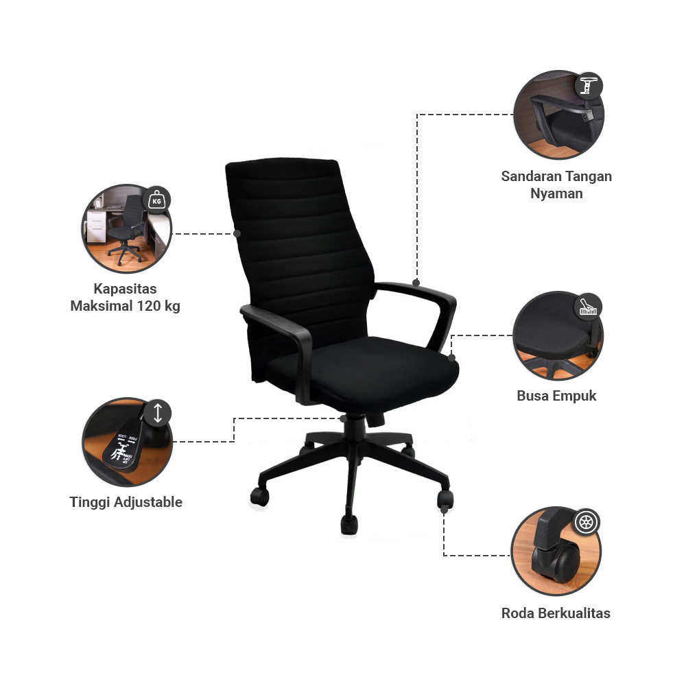 Informa Liverpool Kursi Kantor Sandaran Tinggi - Hitam Tempat Duduk Kerja Dengan Roda Office Chair Kursi Staff Karyawan