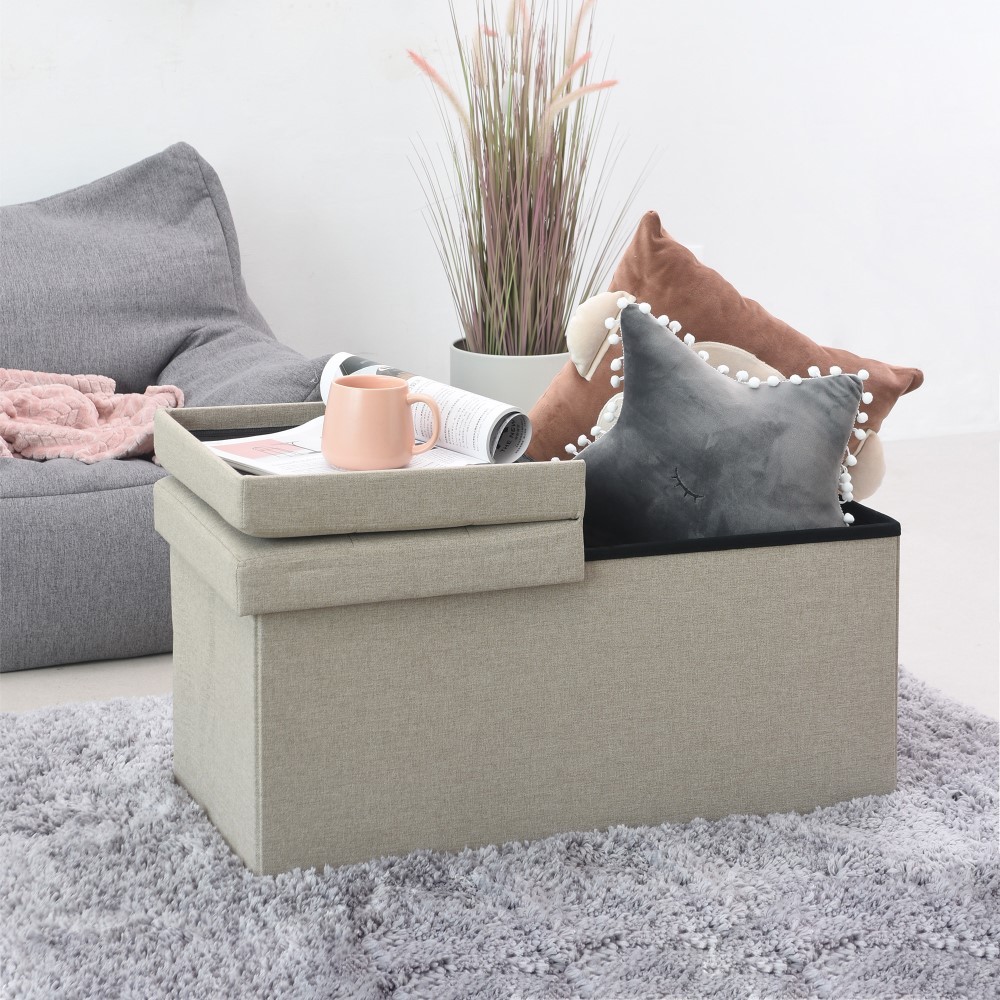 Informa Bangku Ottoman Lipat Fabric - Putih Ivory Tempat Duduk Serbaguna Bangku Multifungsi Furniture Hunian Minimalis