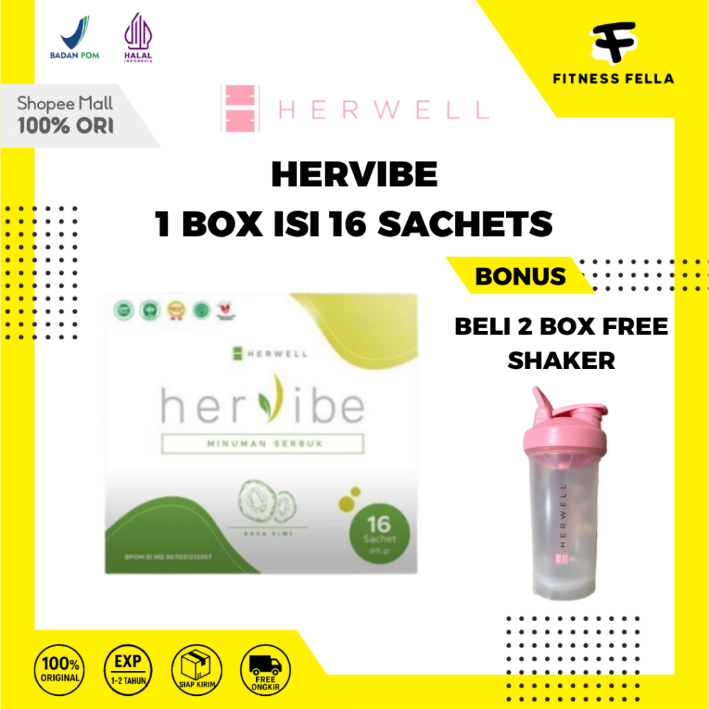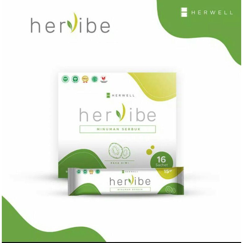 Herwell Hervibe 1 Box Isi 16 Sachets Rasa Kiwi Suplemen Diet Dan Detox Fiber Drink