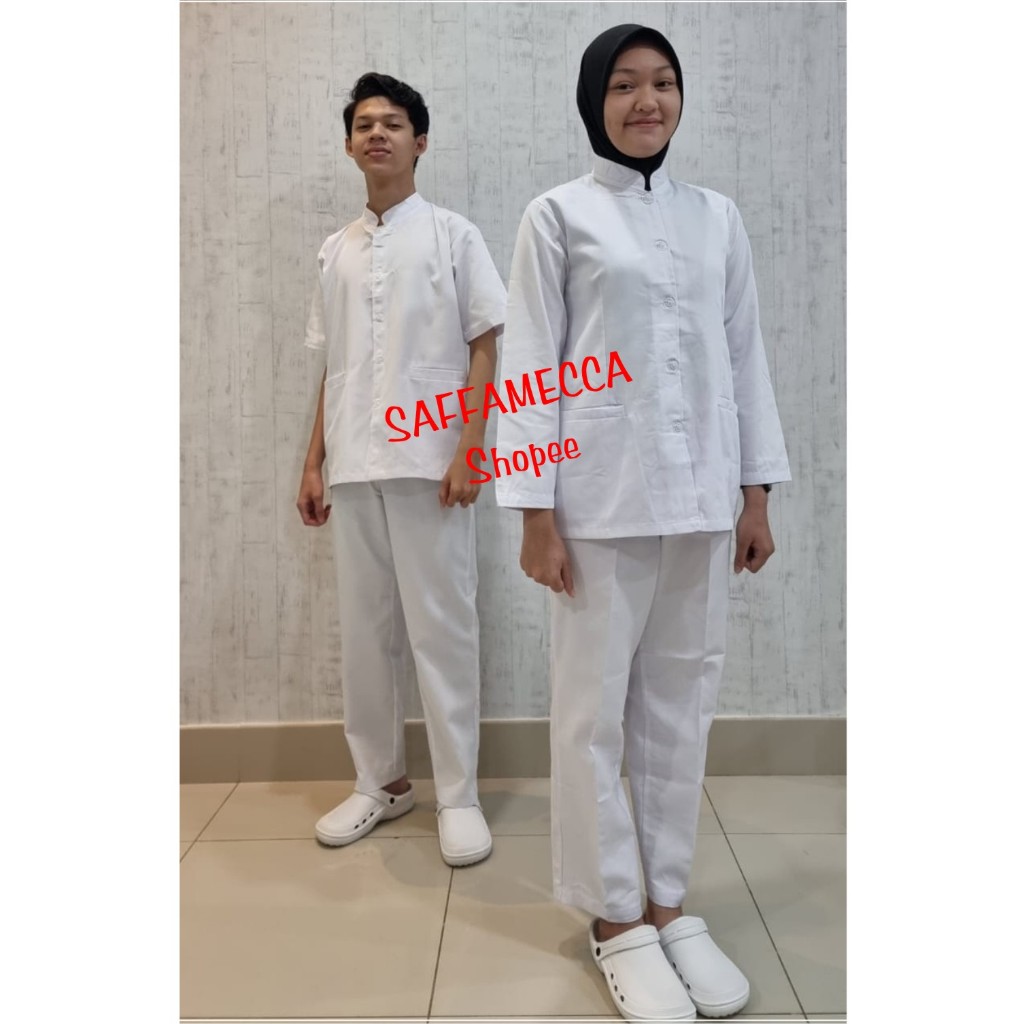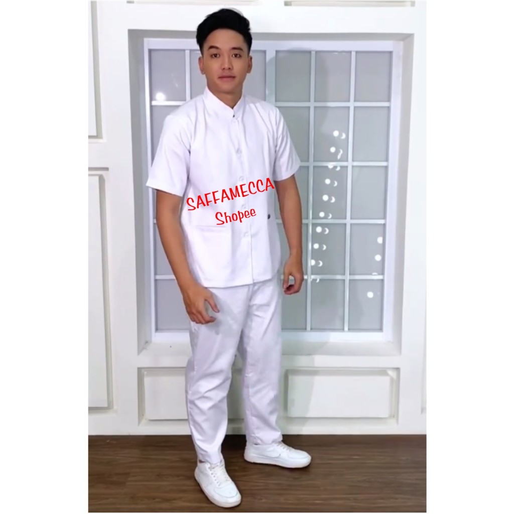 Baju Perawat Putih Pendek Stelan Scrub Perawat Dokter Medis Jaga Pria Cowok Laki Laki Ready