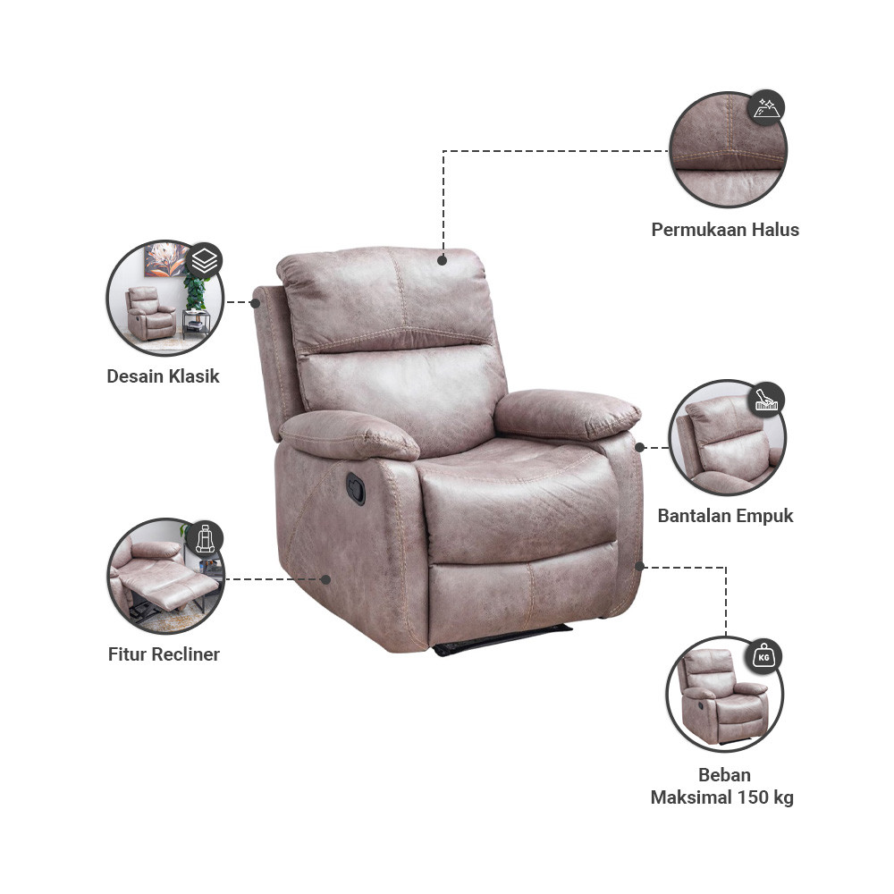 Informa Nathan Sofa Recliner Fabric 1 Seater - Cokelat Tempat Duduk Rebahan Sofa Santai R Tamu Reclining Couch Furniture