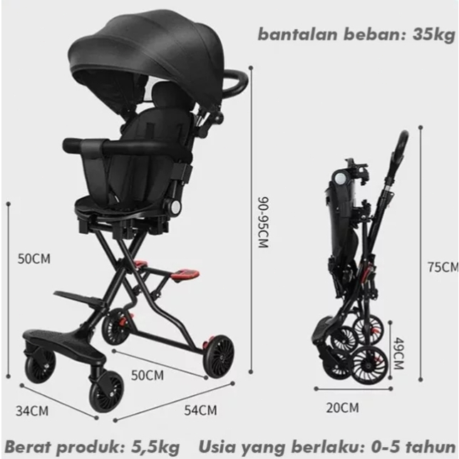 Mmflight Stroller Baby Lipat Travelling Stroller Anak Kereta Dorong Bayi 2 Arah 0-5 Tahun