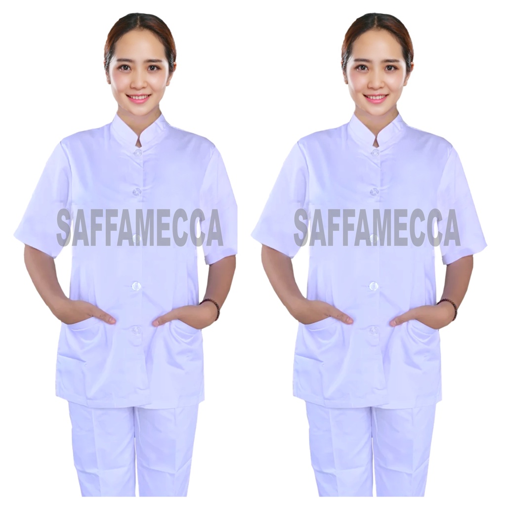 Baju Perawat Putih Pendek Wanita Seragam Perawat Scrub Dokter Medis Bidan Stenan Wanita Perempuan