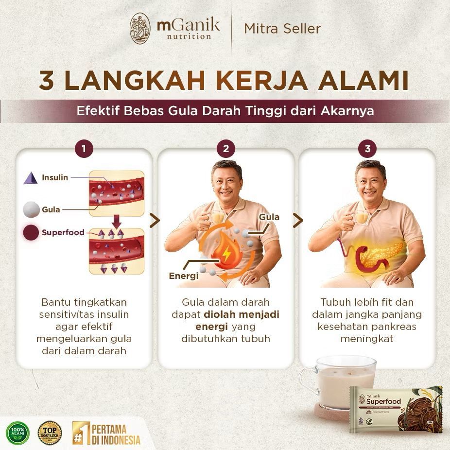 Mganik Superfood Multigrain 500Gr 1 Box 20 Sachets (25Gr) Meal Replacement Suplemen Diabetes
