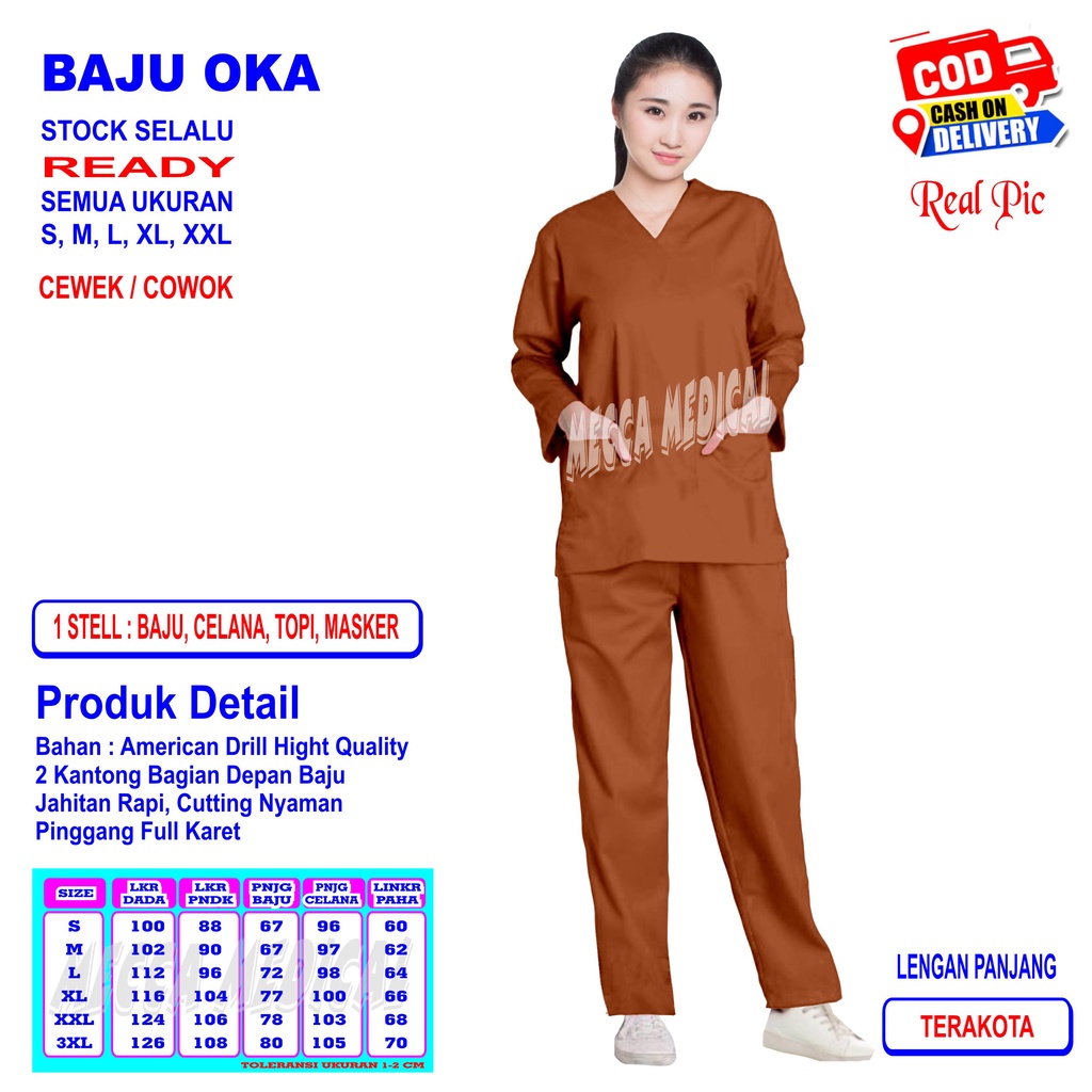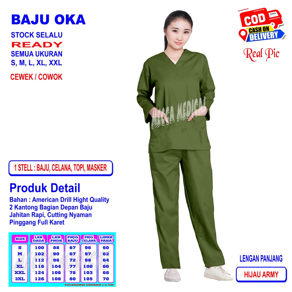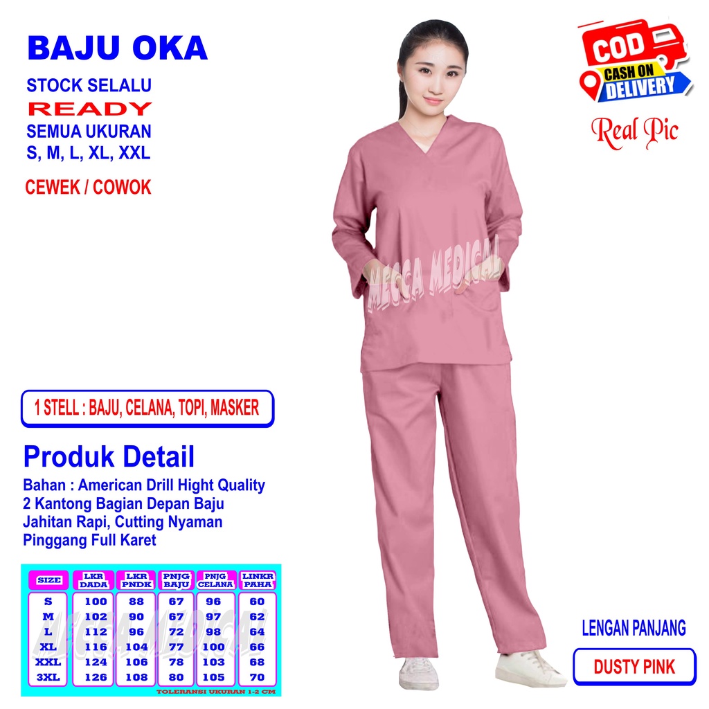 Baju Ok Seragam Oka Dokter Stelan Scrub Perawat Dokter Medis Bidan Doctors Nakes Jaga Lengan Panjang