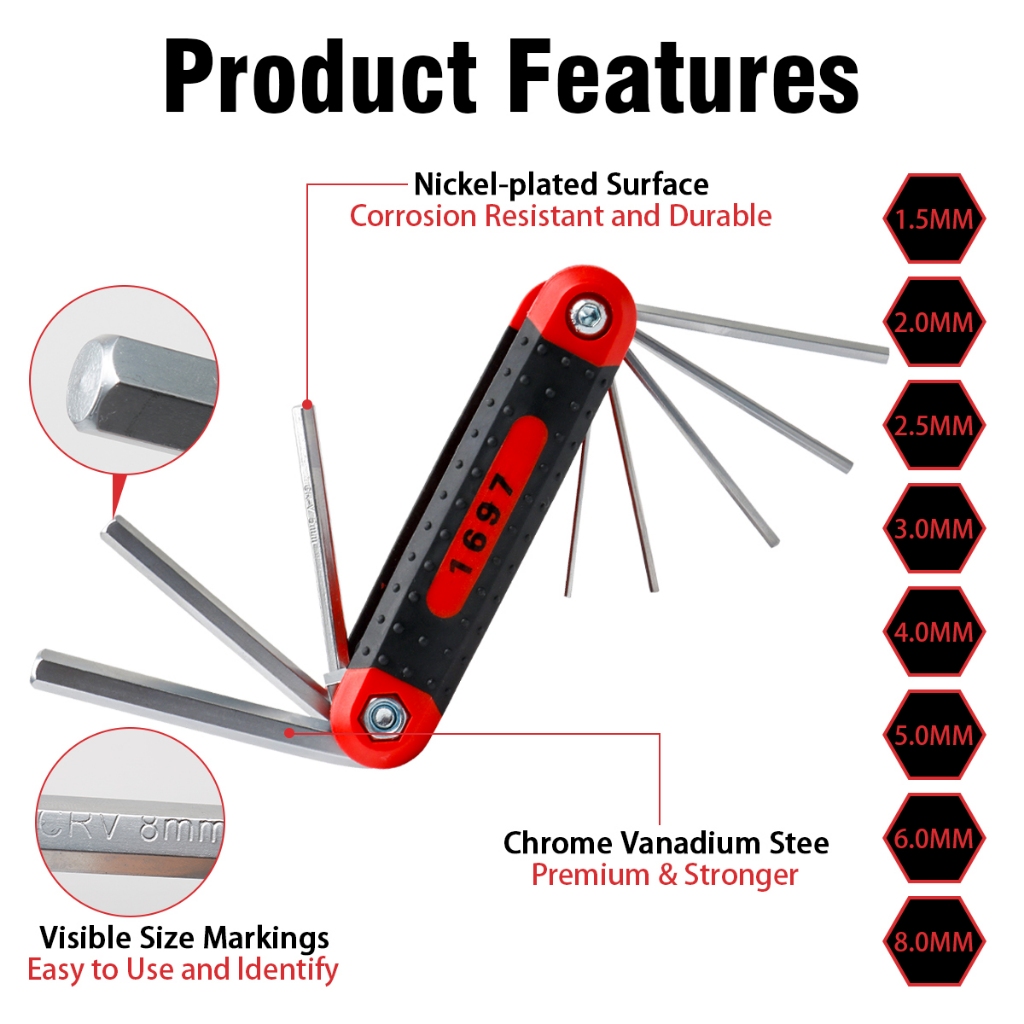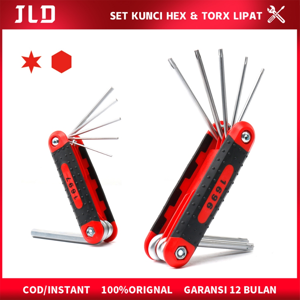 Jld Kunci L Set Lipat 8In1 Hexagonal H1.5-H8 / Torx T9-T40 Cr-V / Sepeda Motor Tool Kit Serbaguna Folding Hex Wrench