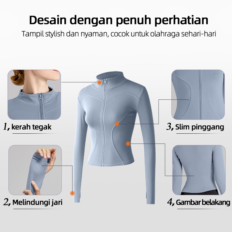 【Ready】Jaket Olahraga Wanita Lengan Panjang baju olahraga wanita baju gym wanita Jaket Anti UV UPF50+ Untuk Yoga/Fitness