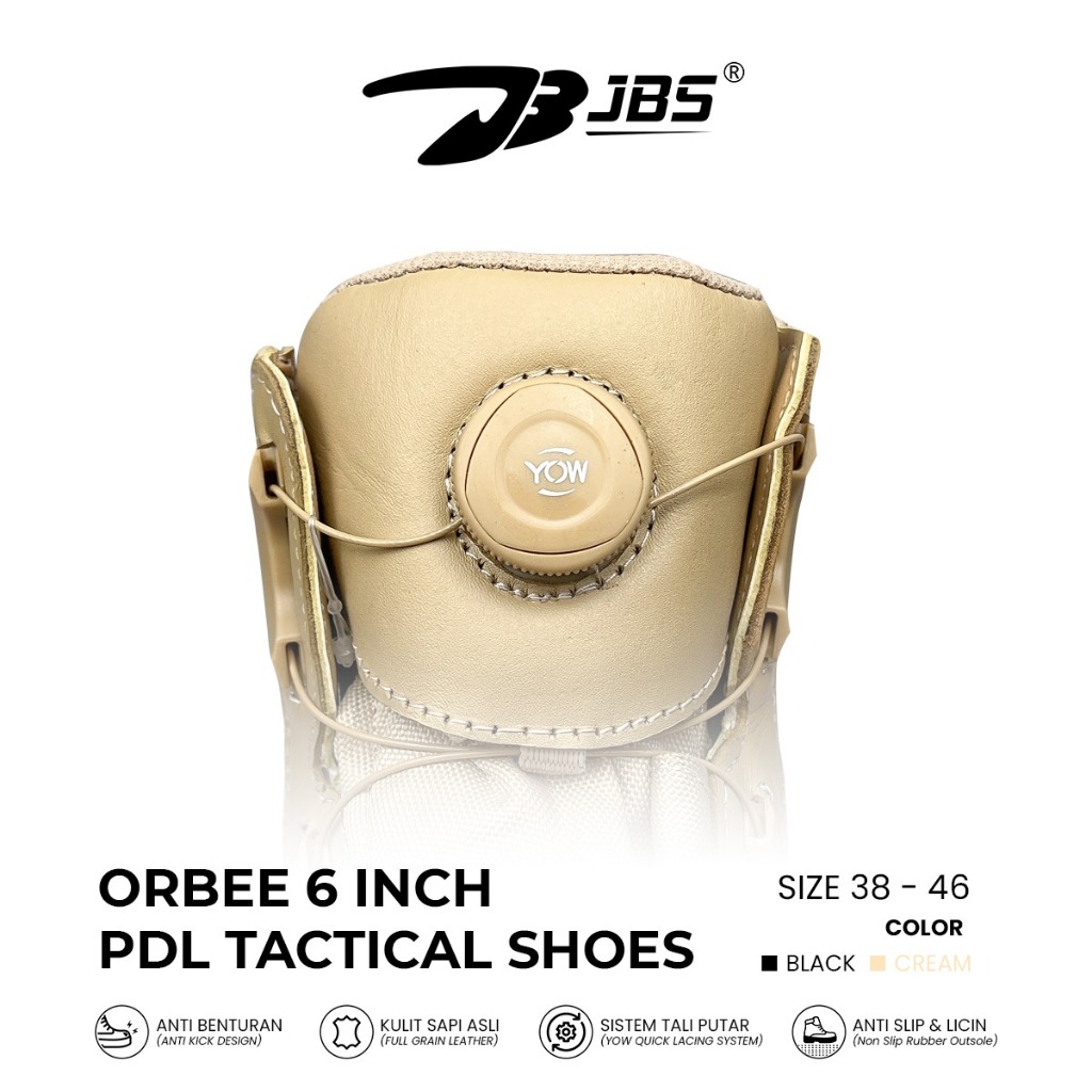 Sepatu Pdh Jbs Orbee 6" Cream Yow Lacing System Gurun Sepatu Tactical Pdh Tali Putar