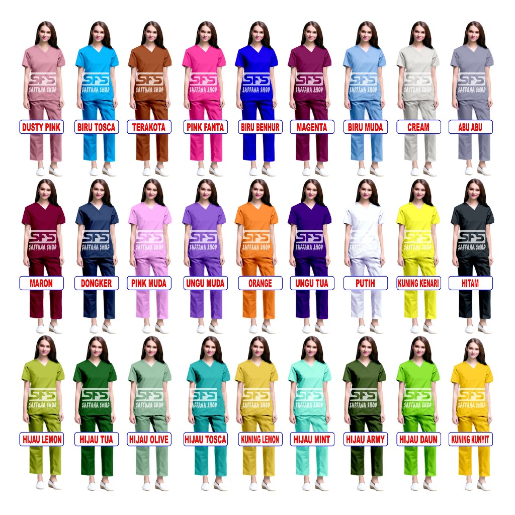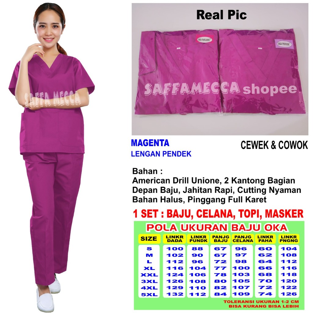 Baju Ok Baju Oka Magenta Lengan Pendek Stelan Scrub Perawat Dokter Medis Bidan Stenan Nakes Jaga