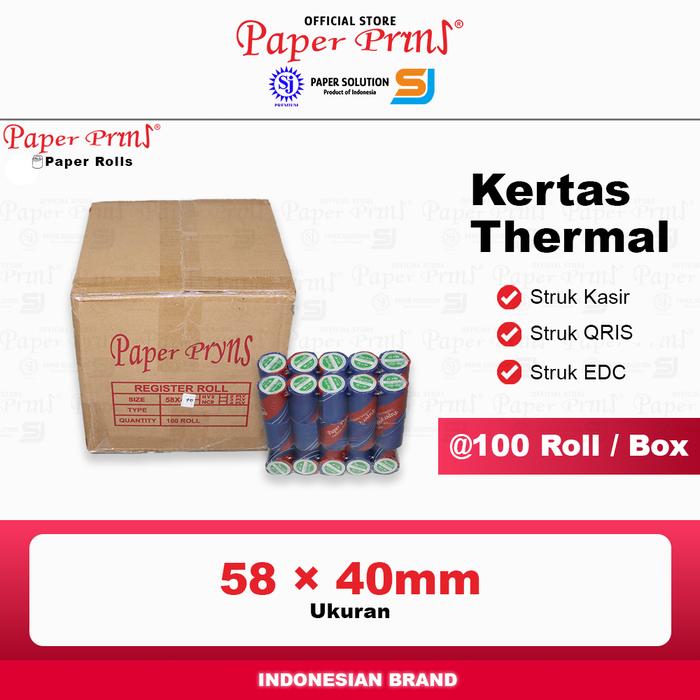 Kertas Thermal Struk 58x40mm Paperpryns (1 Box isi 100 Roll)