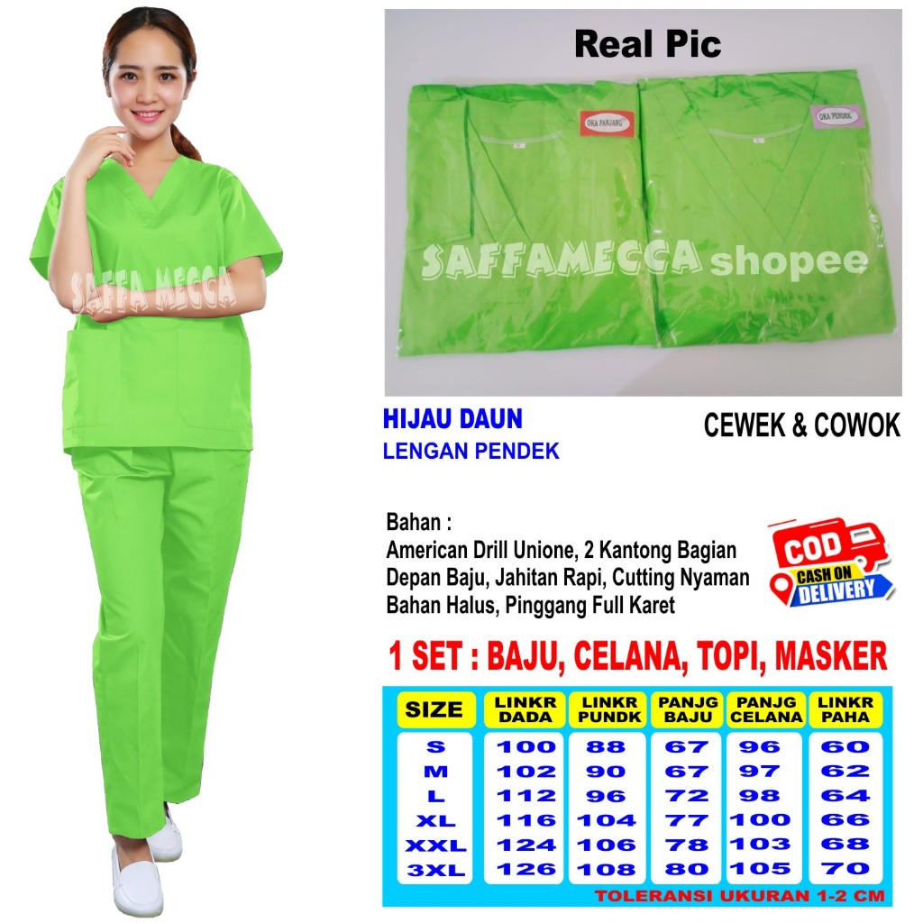 Baju Ok Baju Oka Lengan Pendek Hijau Tua Stelan Scrub Perawat Dokter Medis Bidan Stenan Nakes Jaga