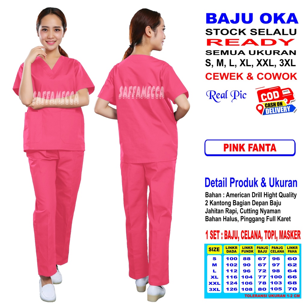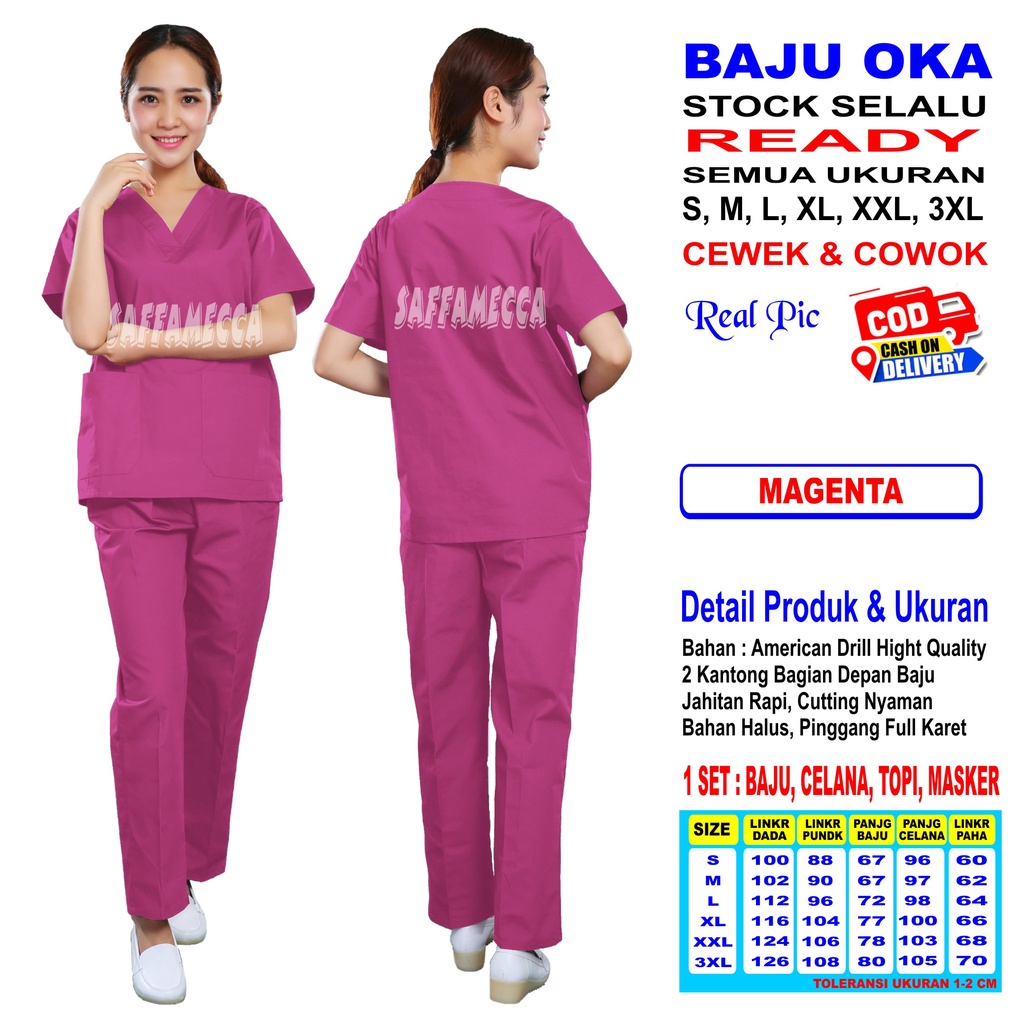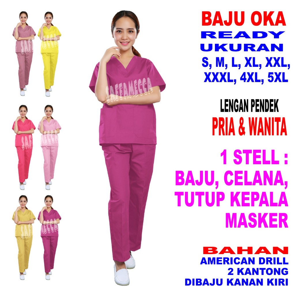 Baju Ok Seragam Oka Scrub Perawat Dokter Medis Bidan Stenan Nakes Jaga Lengan Pendek