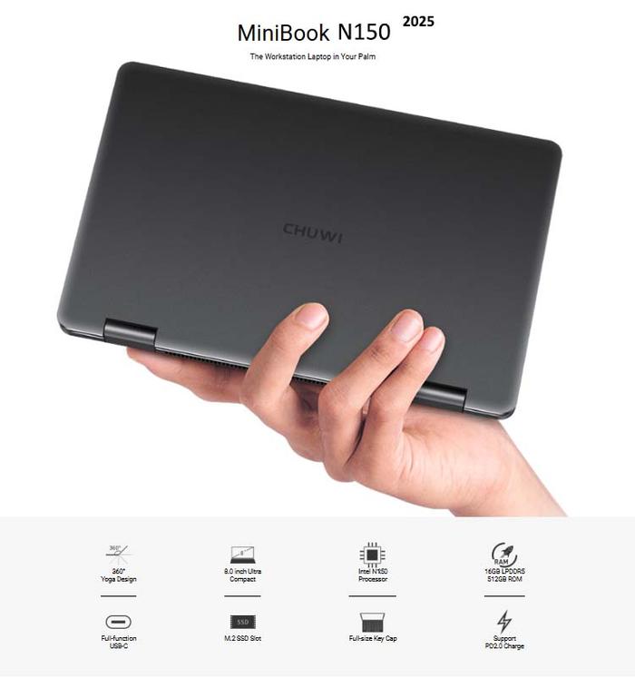 CHUWI MINIBOOK 2025 INTEL N150 16/512GB SSD NVME ULTRA MINI LAPTOP 8" TOUCHSCREEN WIFI6 OFFICE WINDOWS 11 - UNIT