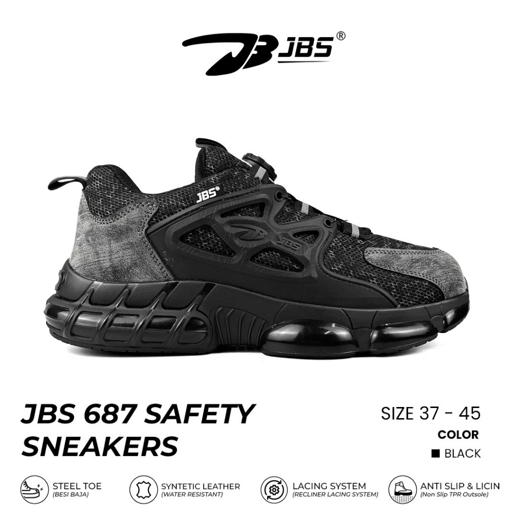 Sepatu Safety Sneakers Jbs 678 Steel Toe Cap Tali Putar Sepatu Kerja Lapis Kevlar Anti Tusukan Paku