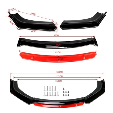 【BARU】 Universal Body Kit Depan Mobil - Bibir Dagu/Splitter Lip Spoiler Diffuser 4PCS - Cocok untuk Mobil Lebar 172-178c