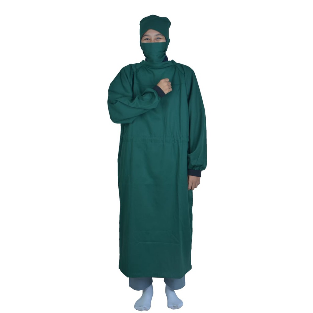 Gown Medis Apd Medis Surgical Gown Jubah Operasi Lengan Panjang Pria / Wanita Bahan American Drill Ready All Size