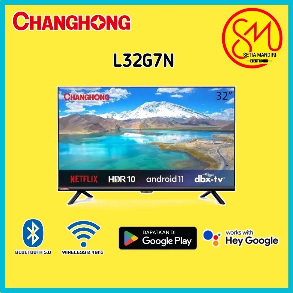 CHANGHONG Smart Android TV 32 Inch HD HDR Digital DVB-T2 WiFi L32G7N [KARGO]
