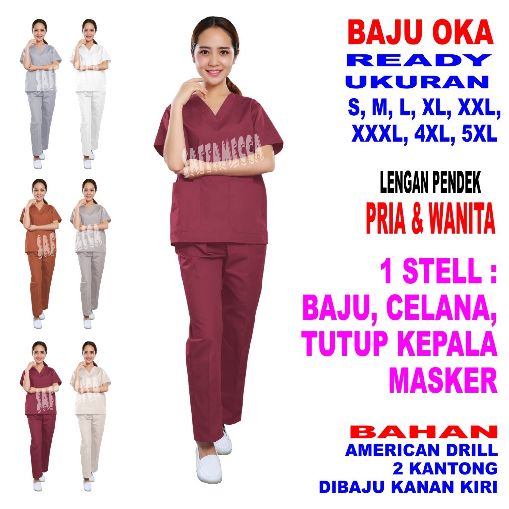 Baju Ok Seragam Oka Scrub Perawat Dokter Medis Bidan Stenan Nakes Jaga Lengan Pendek Ab