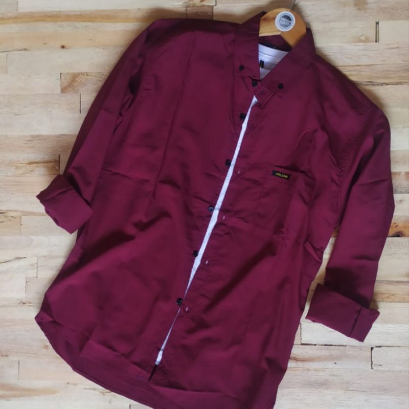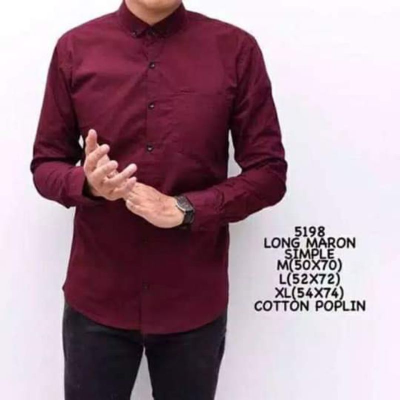 Baju Kemeja Pria Merah Maroon Lengan Panjang Formal Kasual