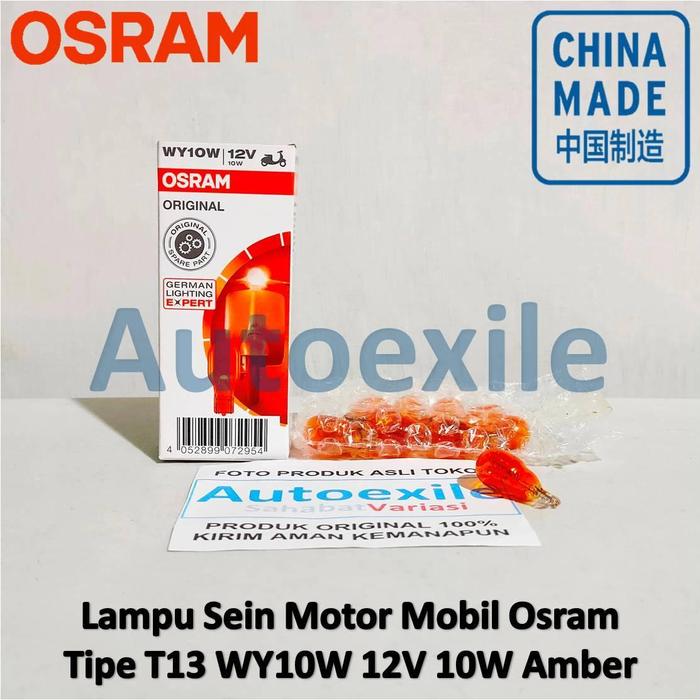 OSRAM ORIGINAL T13 WY10W 12V 10W SPARE PART AMBER JINGGA LAMPU SEIN SEN BELOK MOTOR MOBIL DUDUKAN PIPIH CUCUK COLOK - WY