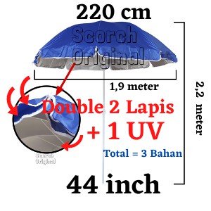 Payung Taman DOUBLE DUA/ 2 Lapis & 1 Lapis Anti UV silver UK T 44 inch = 220cm