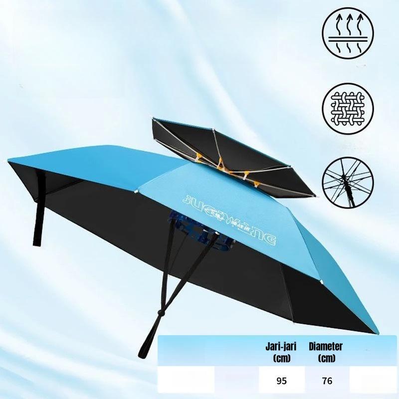 95cm Payung Kepala Pancing Portabel Payung Topi Lapisan Ganda Tahan Angin Dan Tutup Anti-UV Payung Memancing Luar Ruanga