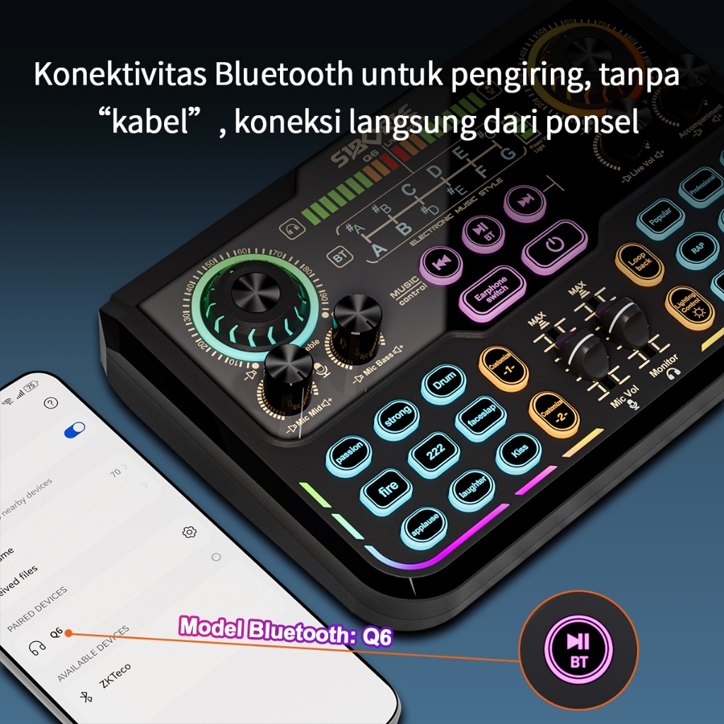 Siborie Soundcard Q6 Original Paket Lengkap Mixer Bluetooth sound card for Streaming Langsung karaoke