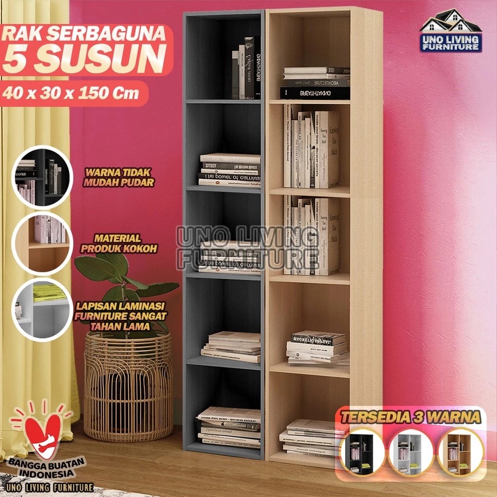 RAK BUKU - LEMARI BUKU - LEMARI RAK BUKU SERBAGUNA RSG 5 RAK KAYU TERBARU MURAH LEMARI BUKU RAK SERBAGUNA 5 SUSUN