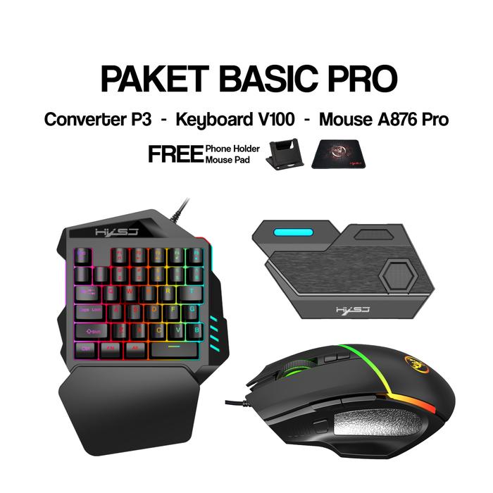 Hxsj Paket Lengkap Keyboard Mouse Converter Setup Mobilador Winlator Free Phone Holder Dan Gamepad - Basic Blk
