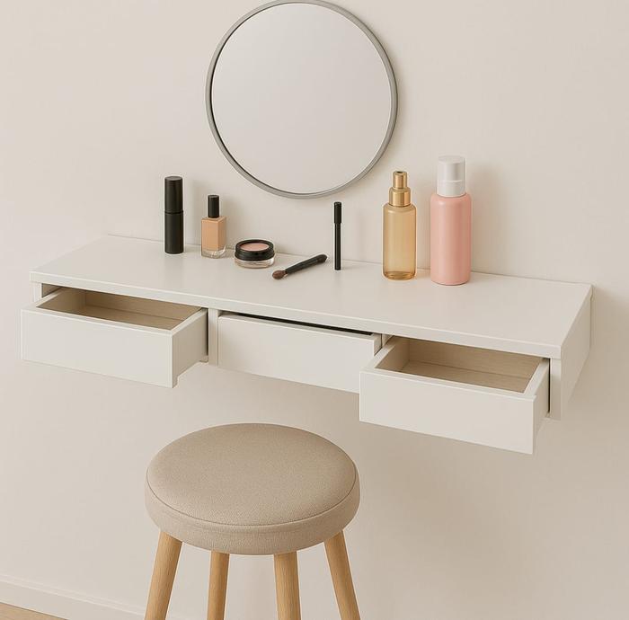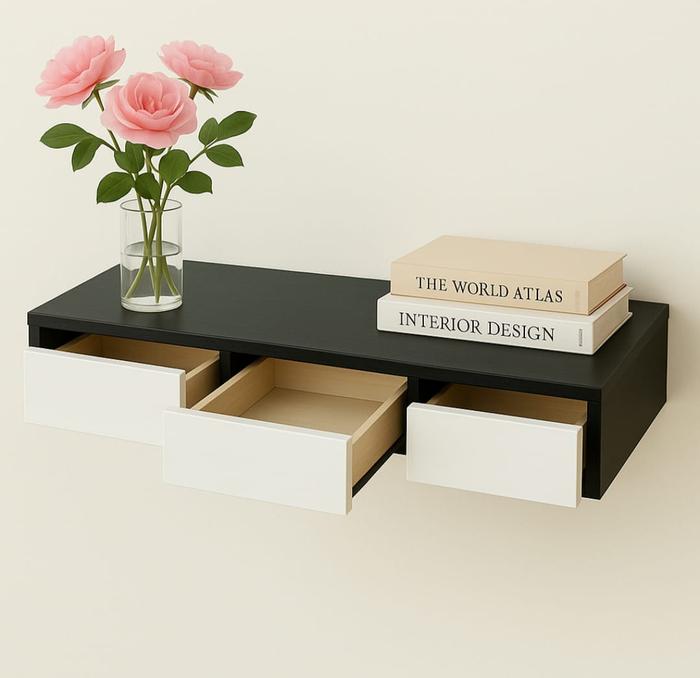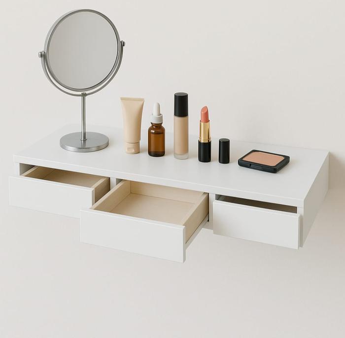 Rak 3 Laci 70X21 Cm Meja Rias Estetik Tempel Dinding Melayang Furniture - Putih
