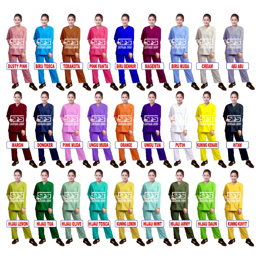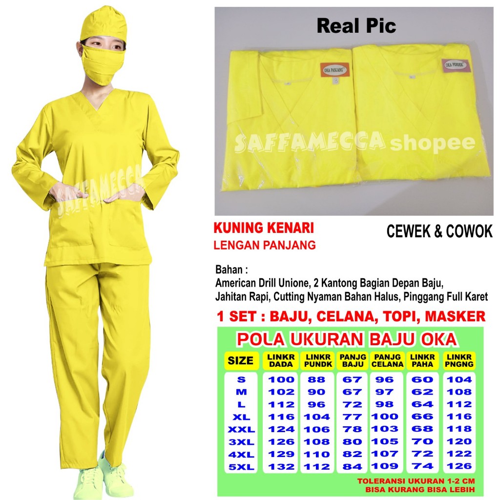 Baju Ok Baju Oka Panjang Kuning Kenari Stelan Scrub Perawat Dokter Medis Bidan Stenan Nakes Jaga